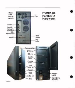 There were a few versions of the Iyonix pc produced, the motherboard of each being identical between them. As well as the ‘classic’ mini-tower, there were the desktop X100 series, X300 series towers, ARIA Cube (X400 series), the full height tower Panther (the model I have) and the Panther TC. The wayback machine has a copy of their website with machine details.